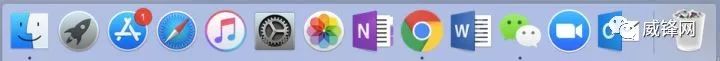 这部分简单来说就是资源管理器。你目前正在使用的应用也会在这部分显示。那我们接下来再看看电脑下方的 Dock(程序坞),这一部分会在之后再细说: