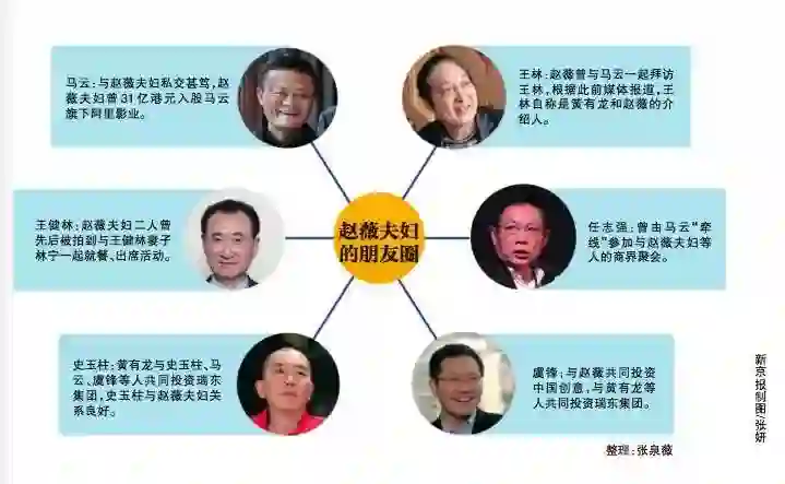 在赵薇夫妇被证监会行政处罚后,赵薇与马云等商业大佬的好友关系再次被强调。