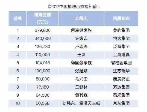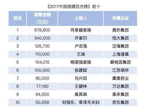 2017年慈善捐赠百杰榜:刘强东、章泽天夫妇第十,位居互联网企业榜首