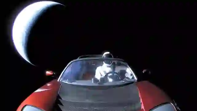 据外媒报道,SpaceX CEO埃隆·马斯克宣布,“重型猎鹰”火箭上搭载的假人宇航员Starman和他乘坐的特斯拉跑车从地球轨道发来了最后一张自拍照。它们最终将离开地球轨道,向太阳系以外飞行。许多人都认为,这是Starman电量耗尽前最后几分钟最好的一张照片。
