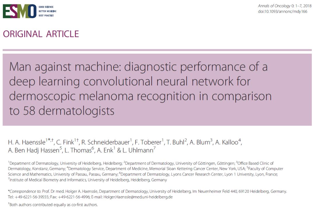 论文:Man against machine: diagnostic performance of a deep learning convolutional neural network for dermoscopic melanoma recognition in comparison to 58 dermatologists