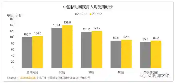 00后最爱玩手机,月均使用时长为139.8小时,即日均4.7小时