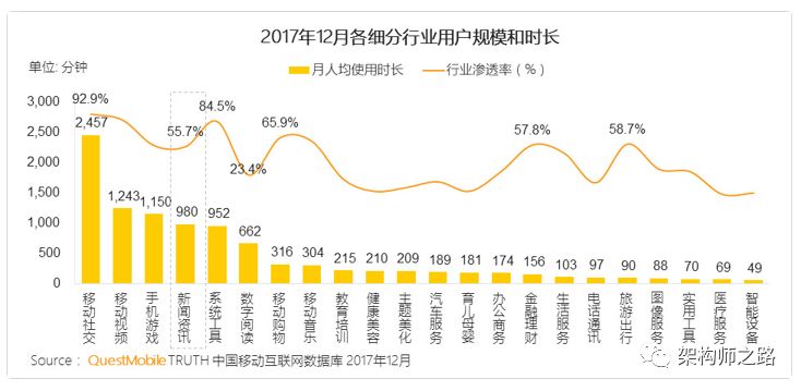 用户时长占领上,TOP4的分类是社交,视频,游戏,新闻资讯