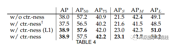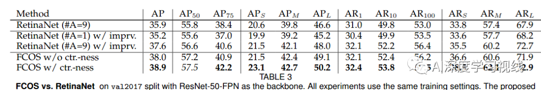 值得注意的是,FCOS的网络输出变量比流行的基于anchor的检测器少9倍,每个位置9个锚盒,这在应用于关键点或实例分割时非常重要。