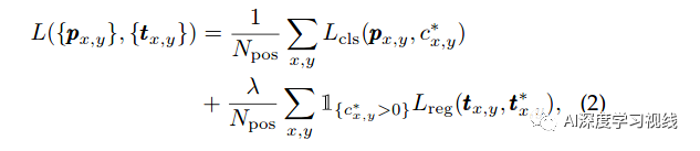 这个位置的类标签c的∗是ground-truth框的类标签。否则,它是一个负样本,c∗= 0(背景类)。