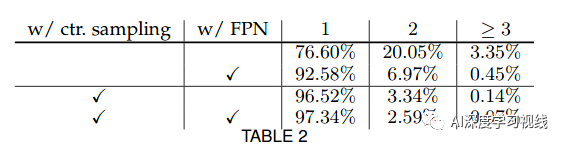 此外,由于不同大小的对象被分配到不同的特征级别,且重叠多发生在大小差别较大的对象之间,因此可以在很大程度上缓解上述模糊性。如果一个位置,即使使用多层预测,仍然分配到多个地真盒,我们只需选择面积最小的GT盒作为目标。实验表明,在多层预测的情况下,无锚探测器和基于锚的探测器都能达到相同的性能水平。