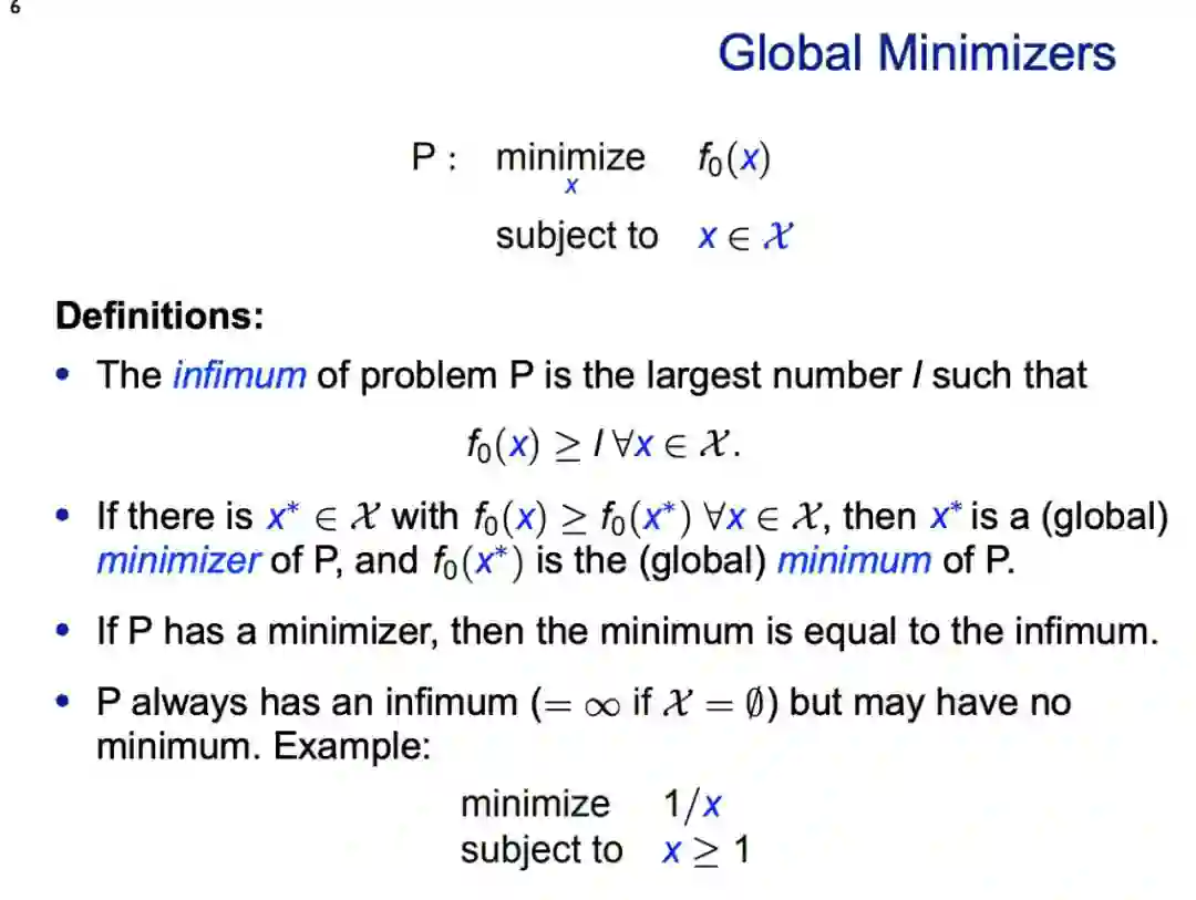 凸优化定义 就定义而言,凸优化是:在最小化(最大化)的优化要求下,目标函数是凸函数且约束条件所形成的可行域集合是一个凸集的优化方法,因此凸优化的判定条件有两个,1.函数定义域是凸集 2.目标函数是凸函数。 凸集的定义:假设对于任意 x, y ∈ C and 任意参数 α ∈ [0, 1], 我们有 αx + (1 − α)y ∈ C,集合 C 为凸集。