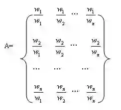 各决策元素相对于总目标的重要性信息可以用权重来表示,由于多目标决策问题是不确定性信息的,因此需要确定权重向量,我们可以采用特征根法。