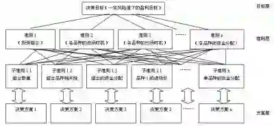 首先,将决策目标按层次进行分解。例如,我们将交易决策分为:准则1,投资组合;准则2,风险控制;准则3,各品种的入场时机;准则4,各品种的资金分配……一直到准则n,涵盖整个交易决策的所有方面。关注私募工场ID:simugongchang,加私募工场老板娘微信guo5_guoguo。准则1又可分为:子准则1,组合数量;子准则2,组合的品种;子准则3,组合的资金分配……一直到子准则n,涵盖整个投资组合的所有方面。然后分别对单个子准则下特征因子、能量因子、速率因子进行抽样统计,得到各因子在不同的时间、能量序列下的状态集。以一定的规则分析各状态集下多空双方的资金分配策略,建立多个多空博弈决策矩阵。对矩阵进行线形规划,得到最优混合解。二次规划(多空对积)得到决策方案。分析完子准则下的决策方案后,以同样的方法分析准则下的决策方案。将非线性规划化解为无数个线形规划,最后得到最逼近决策目标的最优决策方案。