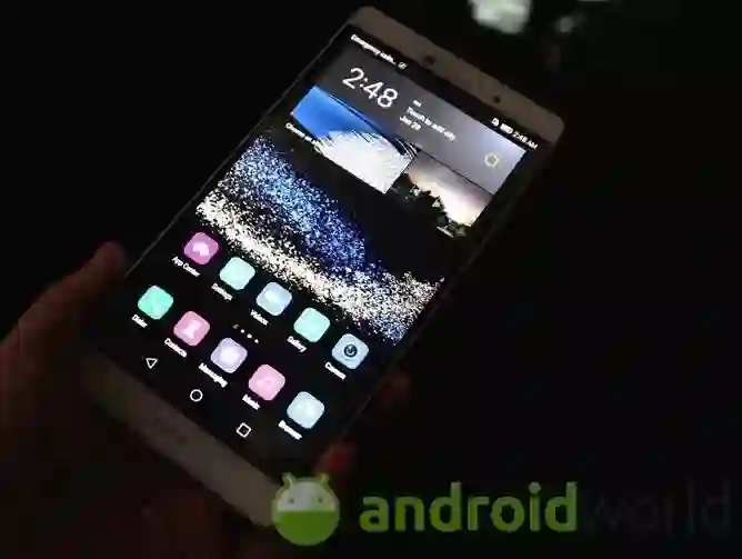 如果仔细来看,会发现 P8 Max 的宣传照中,额头和下巴在观感上都显得很窄,但是实际上来看,额头和下巴都是不小的——尤其是从下巴上 HUAWEI 字样与其上下边缘的距离来看,则能够感受得更加明显。