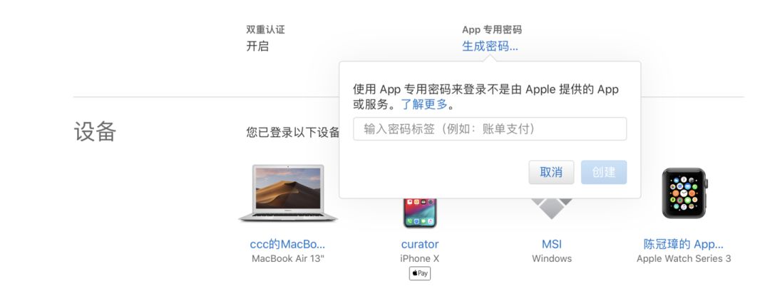 开启两步验证除了能增强安全性,还带来了一项附加功能:App 专用密码。