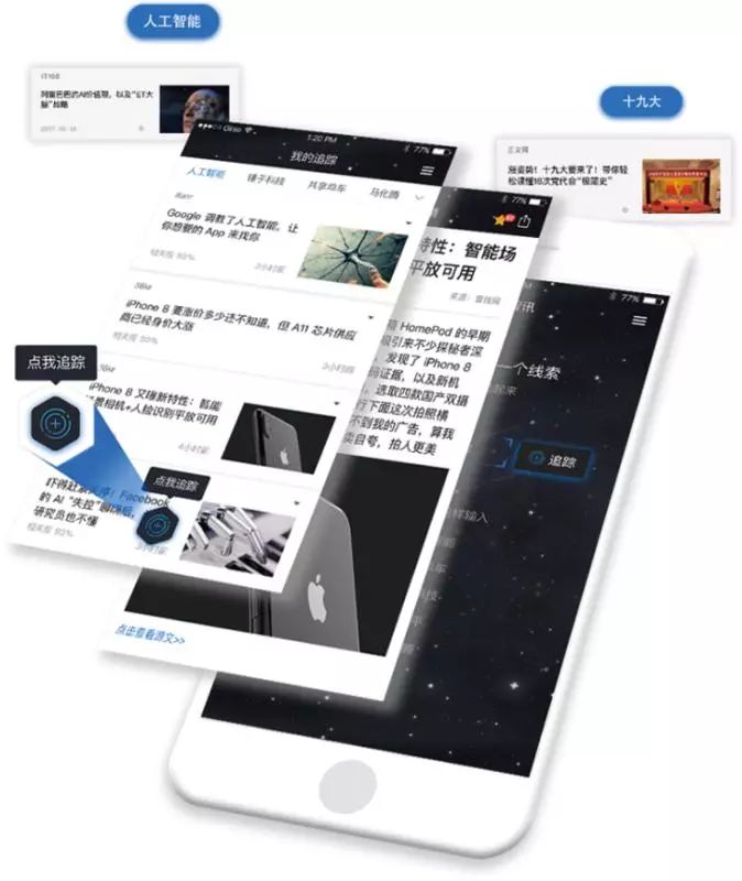智搜(giiso)基于资讯机器人引擎研发的天机智讯,就是集成了资讯机器人功能的移动端APP,目前已经更新到了6.0版本。用户可以通过主题阅读的方式进行订阅,天机智讯可以基于用户自定义的主题,在全网海量资讯中,进行个性化推荐,提升阅读效率。并且通过对用户行为的学习,提炼用户画像,进行兴趣推荐。