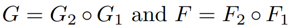 SCAN 具体的网络设计如图 2 所示。这里展示两阶段的网络设计。可以迭代式地对最后一阶段进行分解,得到由更多阶段组成的转换网络。对于任意的图像集合 X 与 Y,两个变换 G:X→Y 与 F:Y→X 完成两个集合之间的图像转换。通过多阶段图像转化模型把变换分解为 ,使得图像转化可以分两个阶段学习。每个阶段都由相同的编码器-解码器结构组成。对于第一阶段输出,我们限制其图像大小为原图的一半,第二阶段输出图像大小与原图大小一致。对于 x∈X,两个阶段的输出分别为