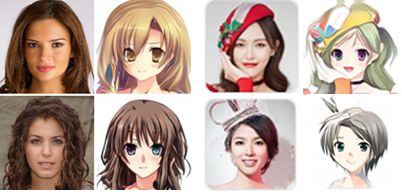 此外,利用 SCAN 还可以更好地完成涉及物体形状改变的图像到图像转换,如真人头像到动漫头像的转换。图 4 展示了真人头像转动漫头像的直观结果,可以看到眼睛和嘴巴的大小和形状都发生了改变,不再是简单的逐像素变换。