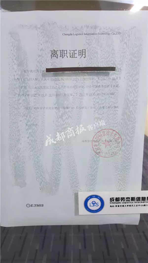 近日,成都一名程序员被新应聘的公司通知入职,然而因为原公司给他出具的一份离职证明上,记载了一句“该员工在项目未完成情况下因个人原因离职”,让他最终被新公司拒绝。