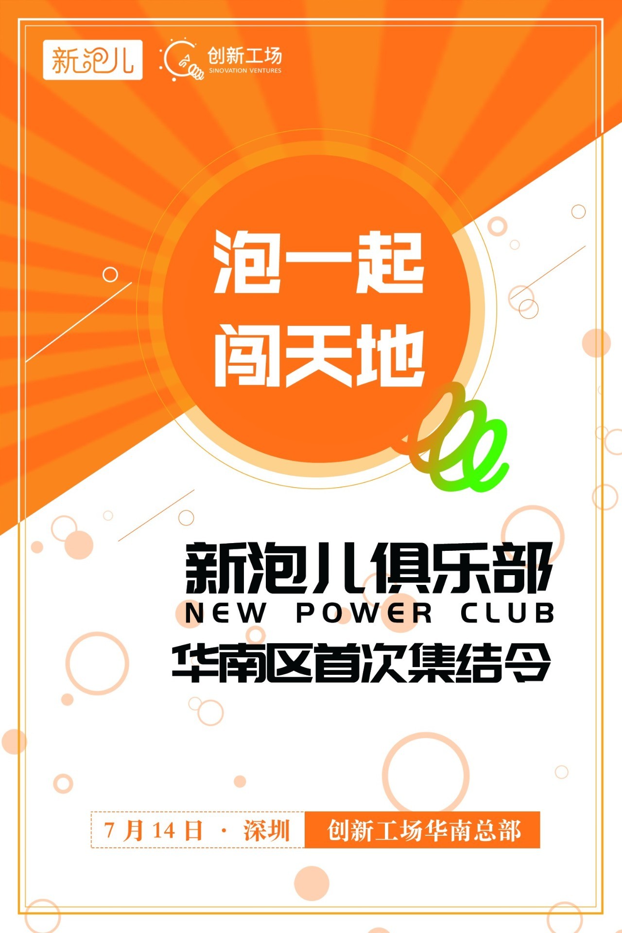 华南区首届新泡儿俱乐部(New Power Club)将7月14日,在深圳创新工场正式成立。当天下午呈上体育行业垂直沙龙饕餮大餐,悦跑圈的CEO梁峰、美骑创始人周福源作为嘉宾分享干货,加上半开放式圆桌讨论。晚上还有向成员开放的新泡儿小聚,确认出席的不仅有16位优秀创投CEO,另有神秘嘉宾。预知后事如何,往下滑动就get。