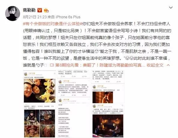 陈建斌时不时就在微博上给蒋勤勤写诗,更让蒋勤勤在微博上表白说:“谁叫我爱上了你的才华横溢?”