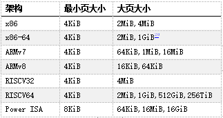 当今常用架构中的页大小,来自维基百科