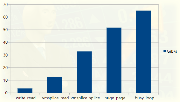 ./write --write_with_vmsplice --huge_page --busy_loop | ./read --read_with_splice --busy_loop62.5GiB/s, 256KiB buffer, 40960 iterations (10GiB piped)