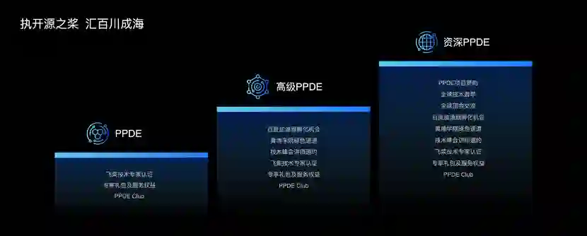 在发布会上,百度飞桨还发布了 PPDE(飞桨开发者技术专家)计划,号召全球 AI 开发者与百度飞桨一起共建开放的深度学习开源社区。