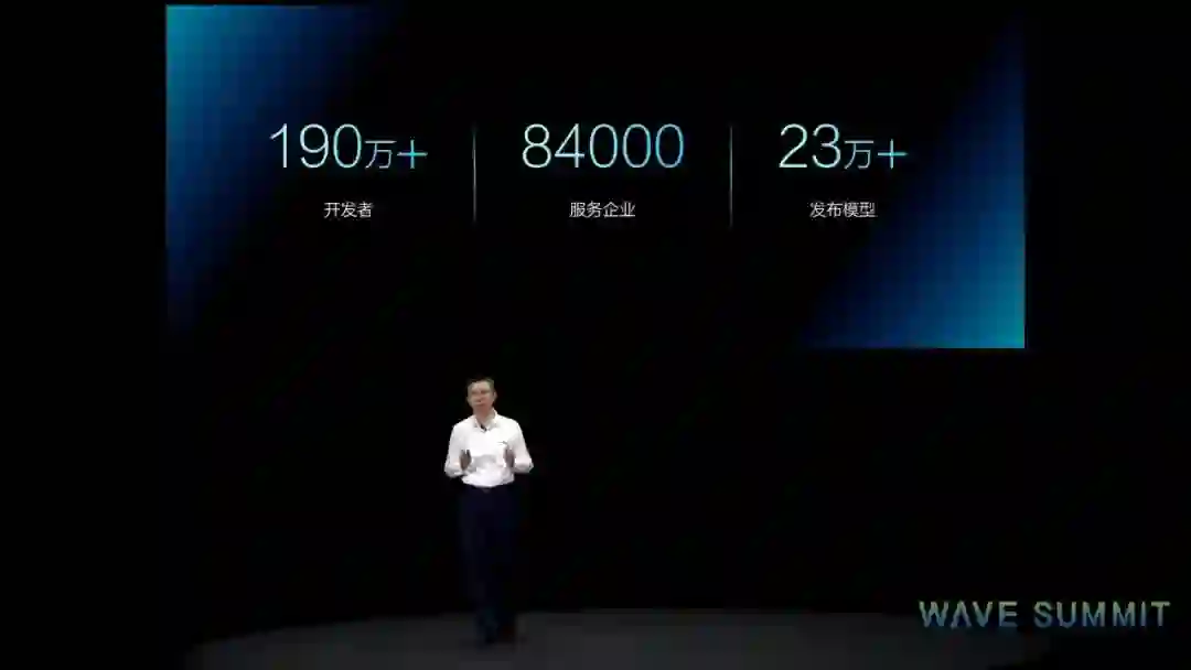 累积开发者数量已超过 190 万,服务企业数量达到 84000 家;发布模型数量已超过 23 万个
