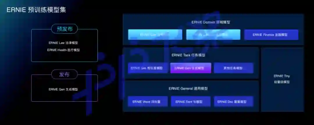 在领域模型方面,飞桨预发布了 ERNIE Law 法律模型和 ERNIE Health 医疗模型两款模型;在任务模型层面,发布了 ERNIE Gen 生成模型。