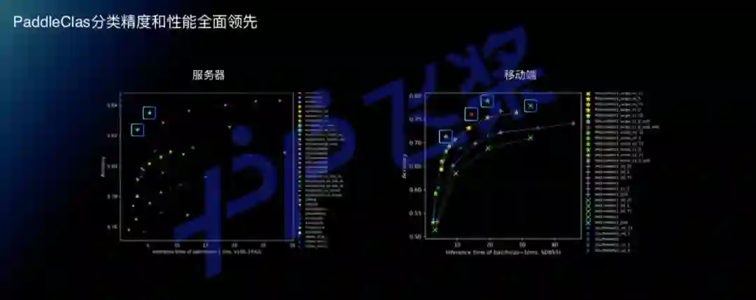可以看出,不管是在服务器端还是在移动端,PaddleClas 在分类精度和性能层面均实现了大幅度的提升。