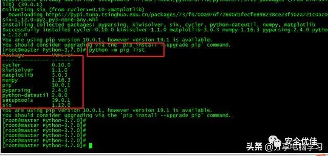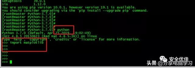 接下来进行测试matplotlib 如果不显示错误的话,就说明你已经成功安装了matplotlib