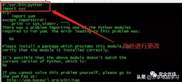 因为yum的功能依赖Pyhon2,现在更改默认Python版本后会导致yum无法正常工作,所以进行以下修复