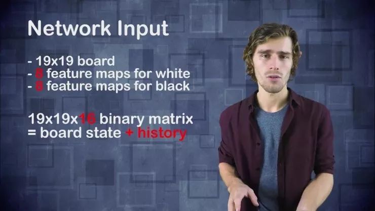 这样这两个矩阵就表示了当前的棋盘位置,同样AlphaGo Zero这篇论文引入了其他特征面来表示,过去的7步的棋盘状态以便可以将棋盘的过去状态引入。