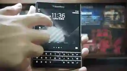 而这台 Blackberry Passport 的操作逻辑是上滑返回多任务卡片,再左滑回到桌面: