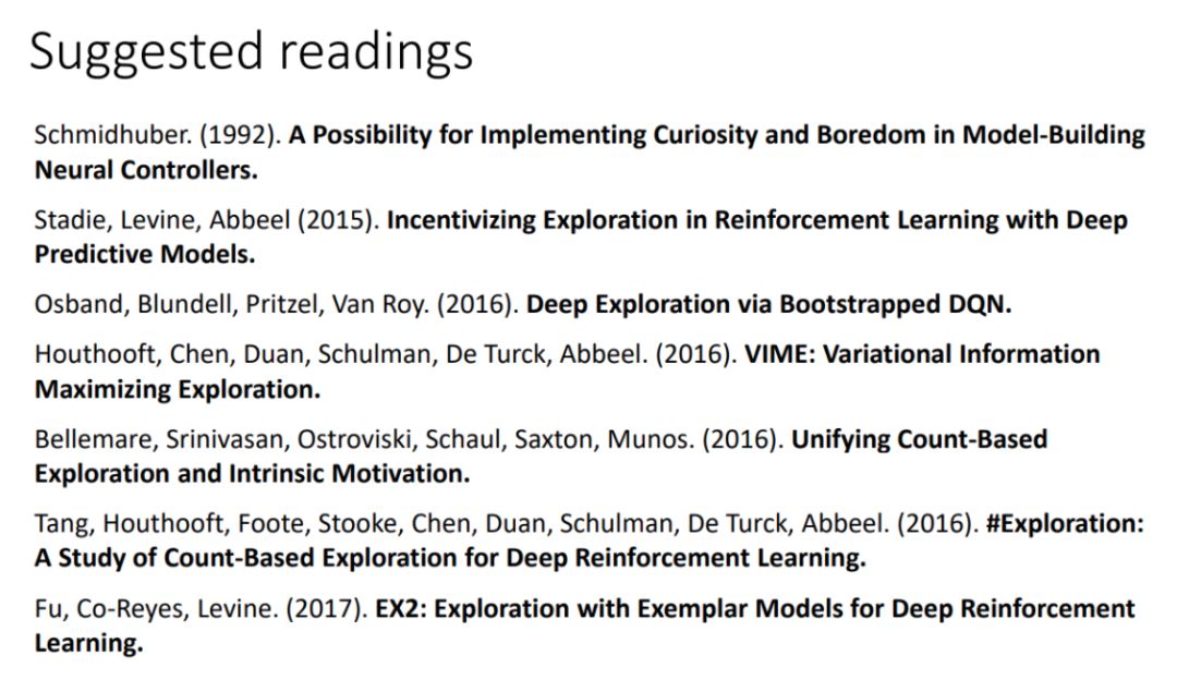 该课程后面还有很多受邀嘉宾与它们所授的课程,包括 OpenAI 的 Igor Mordatch、谷歌的 Mohammad Norouz、伯克利和 OpenAI 的 Pieter Abbeel、伯克利的 Aviv Tamar 和 OpenAI 的 John Schulman。他们并没有提供对应的授课文档,但演讲视频在 YouTube 上都已经放出来了。