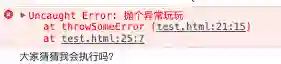 <script> function throwSomeError() { throw new Error('抛个异常玩玩'); console.log('我估计是凉了,不会执行我了!'); }