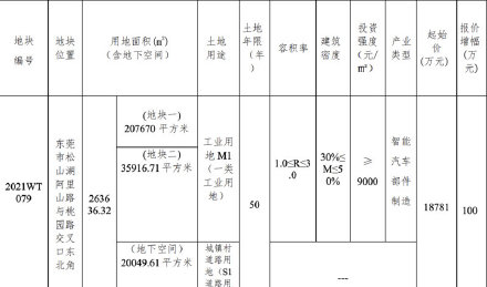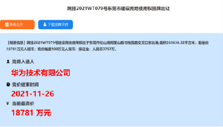 根据东莞松山湖高新区项目投资效益协议合同书显示,项目投资总额不低于 24 亿元,预计这块地华为准备为新能源汽车零部件等进行布置用地。公告显示,这块地的面积为 26.36 万平方米,开发建设期为 3 年,建设项目将在 2022 年 12 月 31 日前开工,在 2025 年 12 月 31 日前竣工。