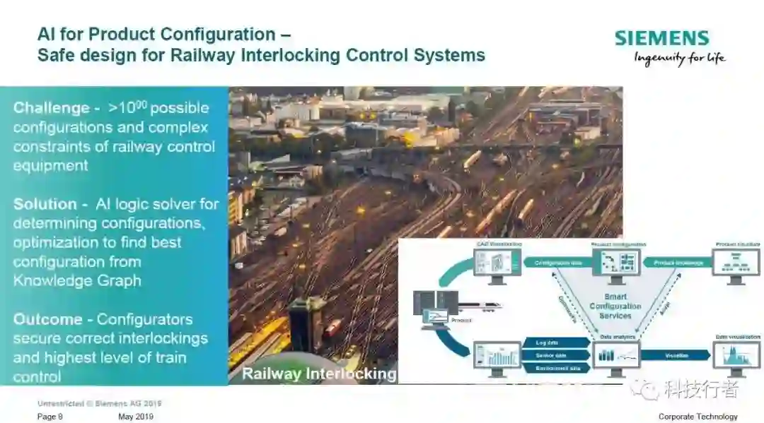 机器学习可以显著改善产品配置,以及制造商按订单生产产品所依赖的配置-定价-报价(CPQ)工作流程。比如,西门子的销售、设计和安装铁路联锁控制系统采用了人工智能和机器学习,它们可以帮助西门子从1090种潜在组合中找出最佳配置。这是机器学习所擅长的,即找出既能够满足客户需求、同时也是最有可能制造出来的产品的最佳配置。(资料来源:《西门子,知识图谱和数据思维支撑的下一级人工智能》,西门子中国创新日,Michael May,成都,2019年5月15日)