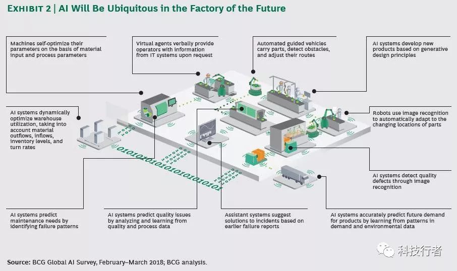 下图说明了人工智能是如何根据BCG的分析为生产流程带来更高灵活性和规模的。(资料来源:波士顿咨询集团,《AI未来工厂》,2018年4月18日)