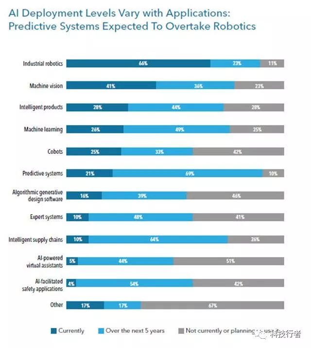 未来五年内,预计人工智能和机器学习在制造业的应用将多过于机器人技术,成为制造业的主要用例。由于算法可以提供推荐的解决方案,因此供应链操作的复杂性和局限性正在成为机器学习算法的“用武之地”。许多制造企业正在寻求进行预测性维护试点,而那些能够带来明显收入增长的试点项目最有可能被投入生产。(资料来源:MAPI基金会,《制造业发展:人工智能将如何改变制造业和未来劳动力》,作者Robert D. Atkinson、Stephen Ezell、信息技术与创新基金会)
