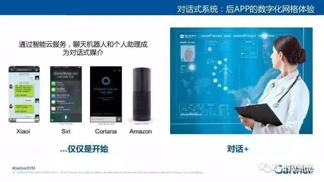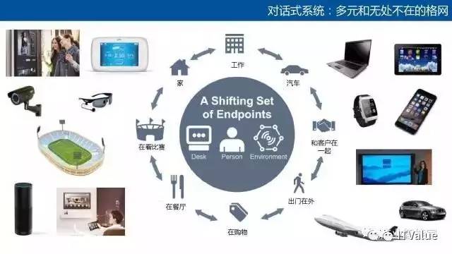 会话界面的当前焦点集中在聊天机器人(chatbots)和支持麦克风的设备(例如,扬声器、智能手机、平板电脑,个人电脑和汽车)。然而,数字网格有一系列不断扩展的端点,人们可通过这些端点访问应用程序和信息,或与他人。社交群体、政府和组织互动。随着设备网格的演变,连接模型将会扩展,设备之间出现更大的协作交互,为连续和环境数字新体验奠定基础。