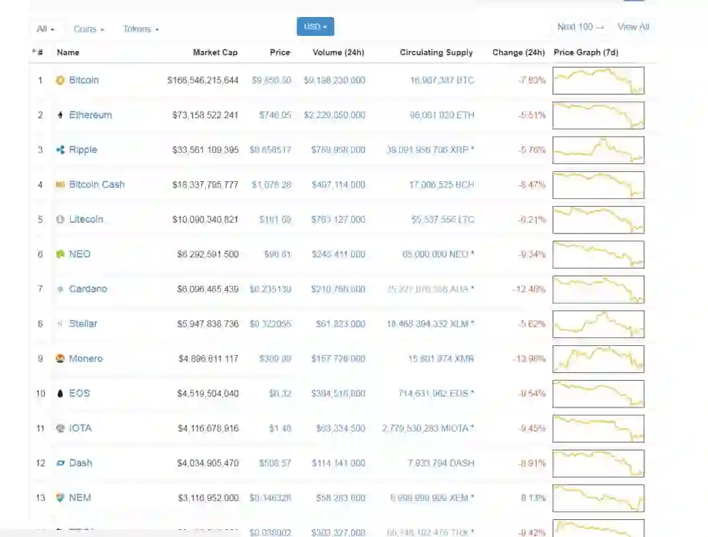 根据CoinMarketCap数据,过去24小时内比特币价格下跌7.8%至9850美元,以太币下跌5.5%,瑞波币下跌5.7%,莱特币下跌6.2%。据CNBC报道,周四日本金融服务局向7个虚拟货币交易所下达“惩罚警告”,并暂停了两所交易所的运营一个月。