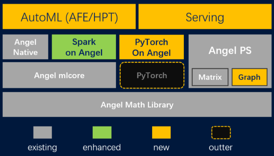 Angel自研的高性能数学库是整个系统的基础,Angel的PS功能和内置的算法内核均是在这个数学库基础之上实现的。