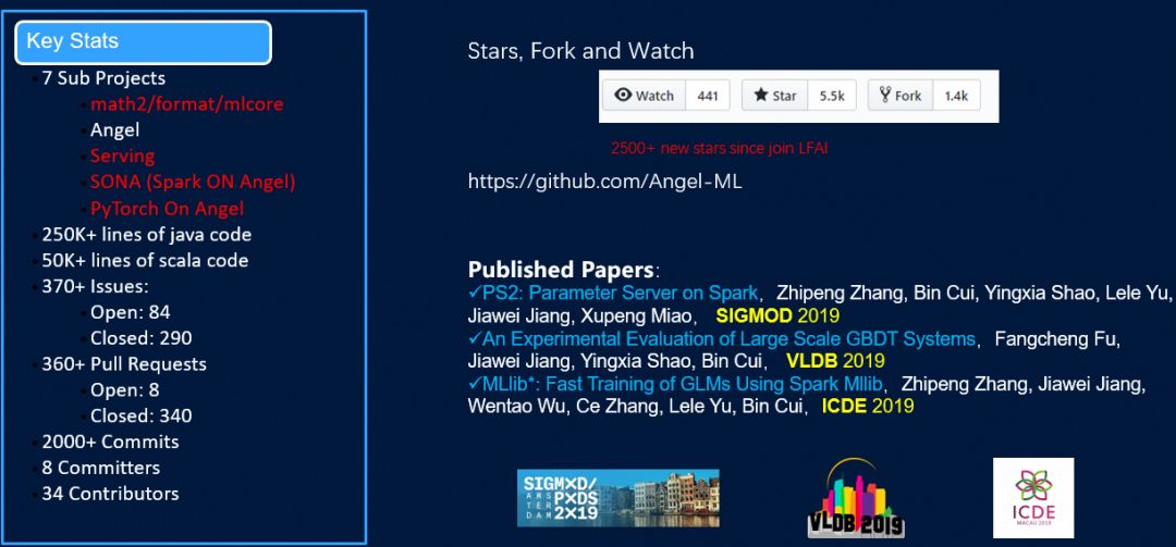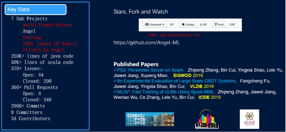图5 GitHub上Angel的统计信息以及Angel发表的论文