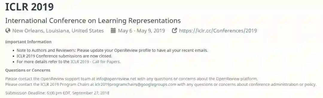 ICLR 2019 将于明年 5.6~5.9 在美国的新奥尔良举行。目前,本届大会的所有投稿论文已经可以在 OpenReview.net 上找到,大家可自行查阅。