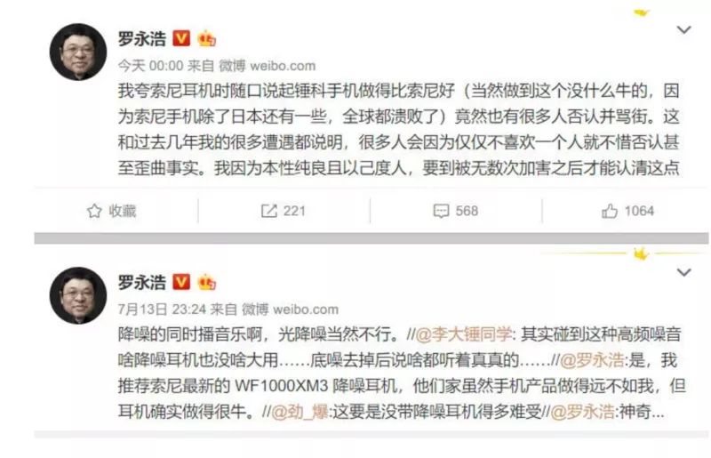 近日锤子科技创始人罗永浩表示,索尼手机除了在日本市场还有一些,全球市场都溃败了,索尼手机做得远不如自己做得锤子手机,但是索尼的耳机做得确实非常厉害。