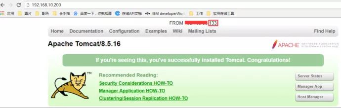 (2)分别启动两个服务器中的tomcat、nginx、keepalived,访问虚拟ip:192.168.10.200,可以查看到访问的是主keepalived服务器的tomcat