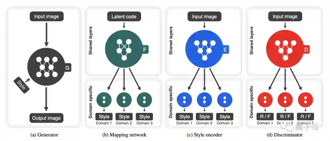 StarGANv2由四个模块组成: