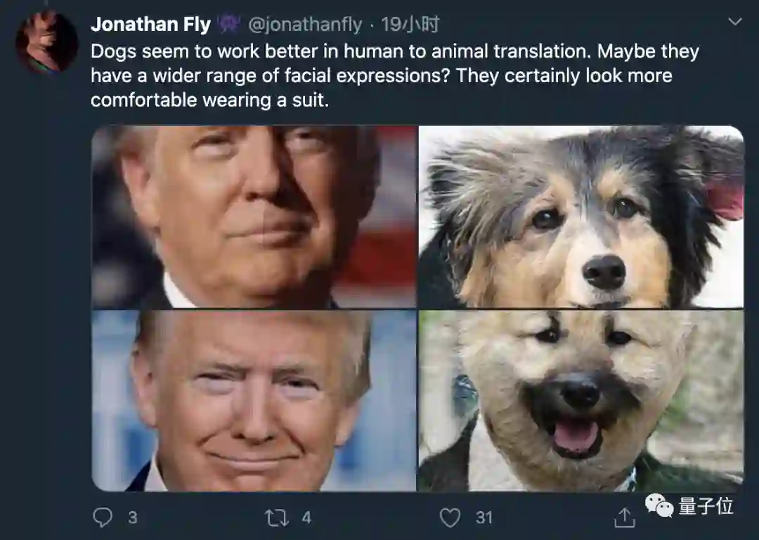 与狗脸合成又成了这样,模型甚至给狗穿上了西服。