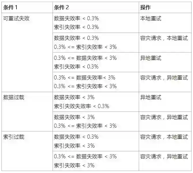 1、大型故障导致模块整体不可用,需要直接进行异地请求或索引容灾,请求失败不进行重试。