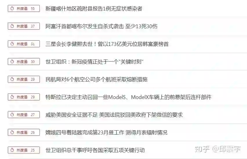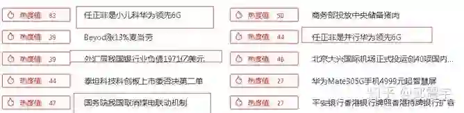 而热门话题生成的需求目标则是通过对当前最新新闻的快速分析,获取当前世界范围内比较热门的、与金融相关的话题,话题内容包括但不限于公司金融事件、国内外政治军事事件等。用户可以通过该功能模块快速感知当前全球的热点话题,为期在做投资决策时提供舆情情报。这个功能可能与一些社交平台上的热点、热门比较类似,不过我们主要针对的是不同平台发布的新闻数据,大部分以金融新闻为主。下图为热门话题展示的结果样例: