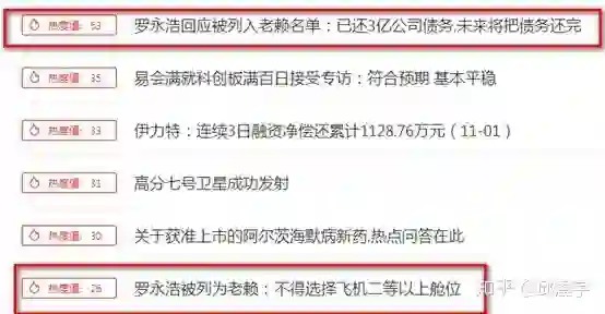 2、效果方面,由于之前的话题描述生成效果不佳,同时使用的相似度计算方法(fuzzywuzzy)也并不好,因此合并的效果也不好,如下图所示,两个罗永浩被列为老赖的话题是在不同迭代中生成的话题,但是最终没有被合并上。