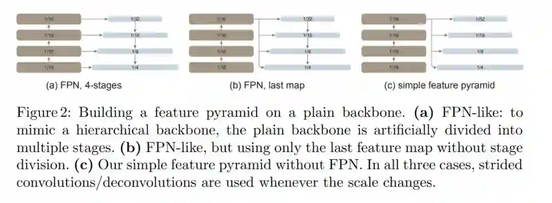 如果主干网络不是分层网络,那么 FPN 动机的基础就会消失,因为主干网络中的所有特征图都具有相同的分辨率。该研究仅使用主干网络中的最后一张特征图,因为它应该具有最强大的特征。